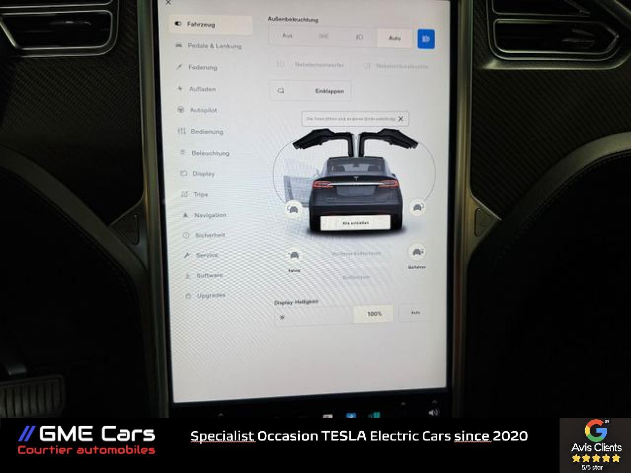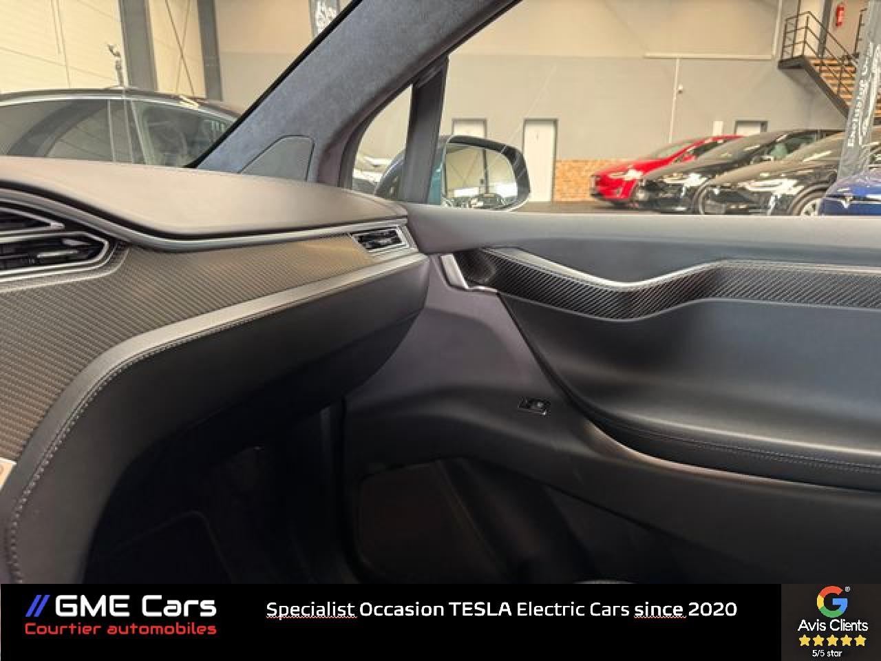 Nous sommes heureux de vous proposer cette Tesla Model X 100D en Midnight Silver Metallic avec les luxueux sièges Black Premium et le décor en fibre de carbone. Le véhicule convainc par ses 7 sièges et le pilote automatique amélioré d'une valeur de 5.700 € et attelage